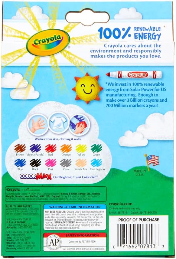 Discover the vibrant world of crayola fine line ultra clean washable markers this set of 12 dazzling markers is perfect for crafting detailed expressions with fine lines, mastering shading and layering, and exploring boundless creativity with precision. These washable markers easily clean off skin, clothes, and most painted walls, making them ideal for kids. Pair them with your favorite coloring books for an enhanced creative experience. Perfect for classroom supplies, school projects, and artistic feats, these markers also make a fantastic holiday gift or stocking stuffer. Safe and nontoxic, they are suitable for children