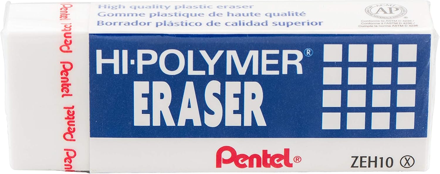 Pentel Hi-Polymer Block Eraser, White, 10/Box (ZEH10PC10)